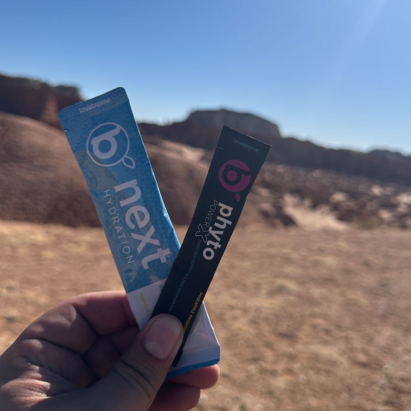 Speaking of hiking, I never go on an adventure without PhytoPower X and Next Hydration. Our hikes often take us deep into the desert under the blazing sun, so having the powerful energy boost from PhytoPower X, along with the essential hydration support from Next Hydration, is an absolute must. If you live an active lifestyle, I highly recommend adding these two to your P84 daily regimen!